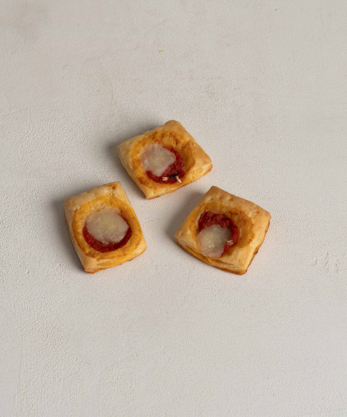 Pasta sfoglia: farina di frumento tipo “00” (glutine), burro (latte), zucchero semolato, vino bianco secco aromatizzato (solfiti), latte intero in polvere (latte), lievito di birra, tuorlo d’uovo fresco pastorizzato (uova), malto in polvere.