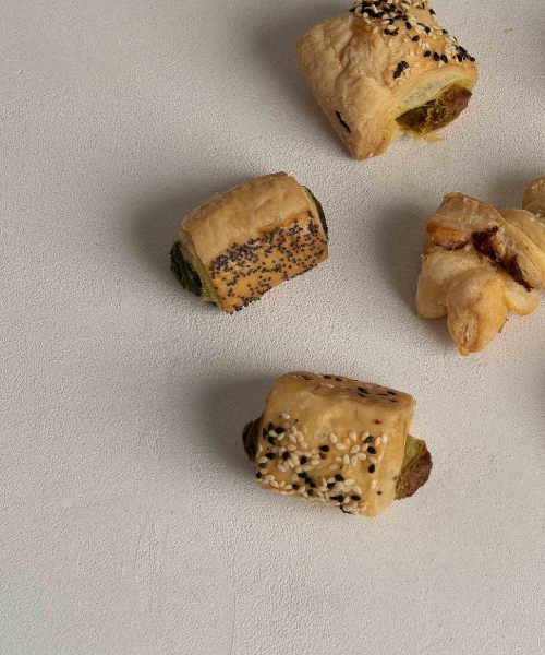 Pasta sfoglia: burro (latte), farina di frumento tipo “00” (glutine), vino bianco secco aromatizzato (solfiti), tuorlo d’uovo fresco pastorizzato (uova).